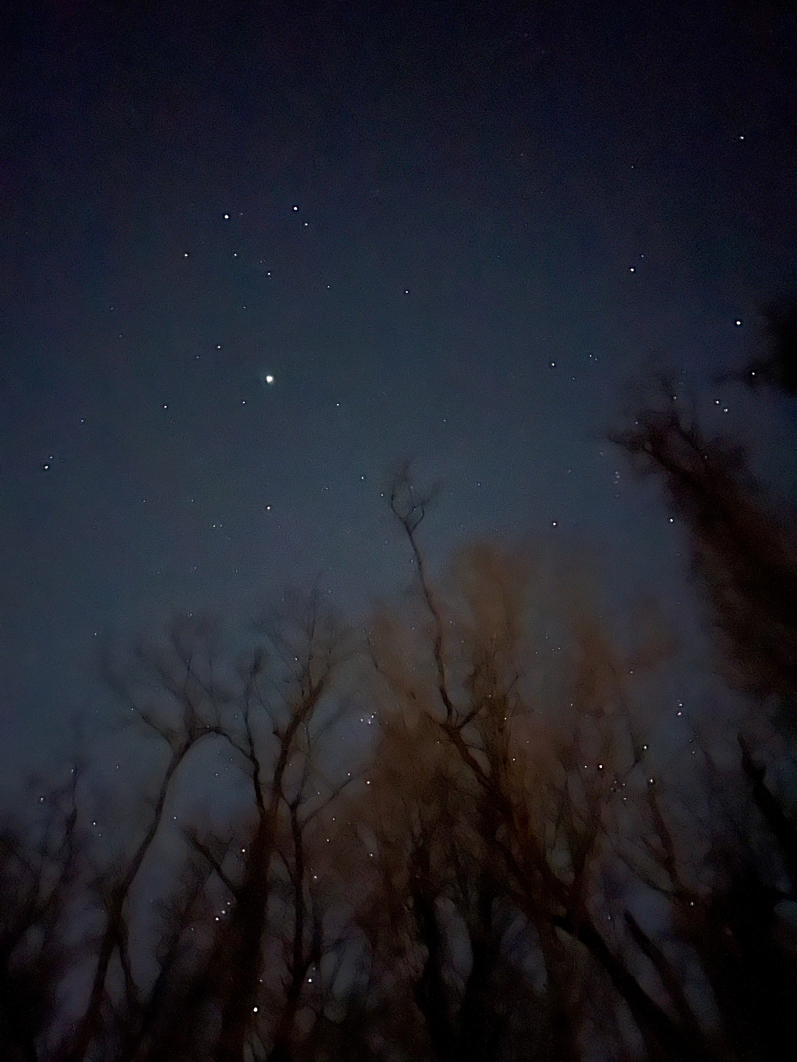I am outside when I wouldn’t otherwise be. I am under the stars, under the sky. I am smelling the air, I am marking the seasons, I am neither this thing or that, not someone failing or succeeding or trying or anything at all. I am someone walking under the stars. And this is how they looked tonight.